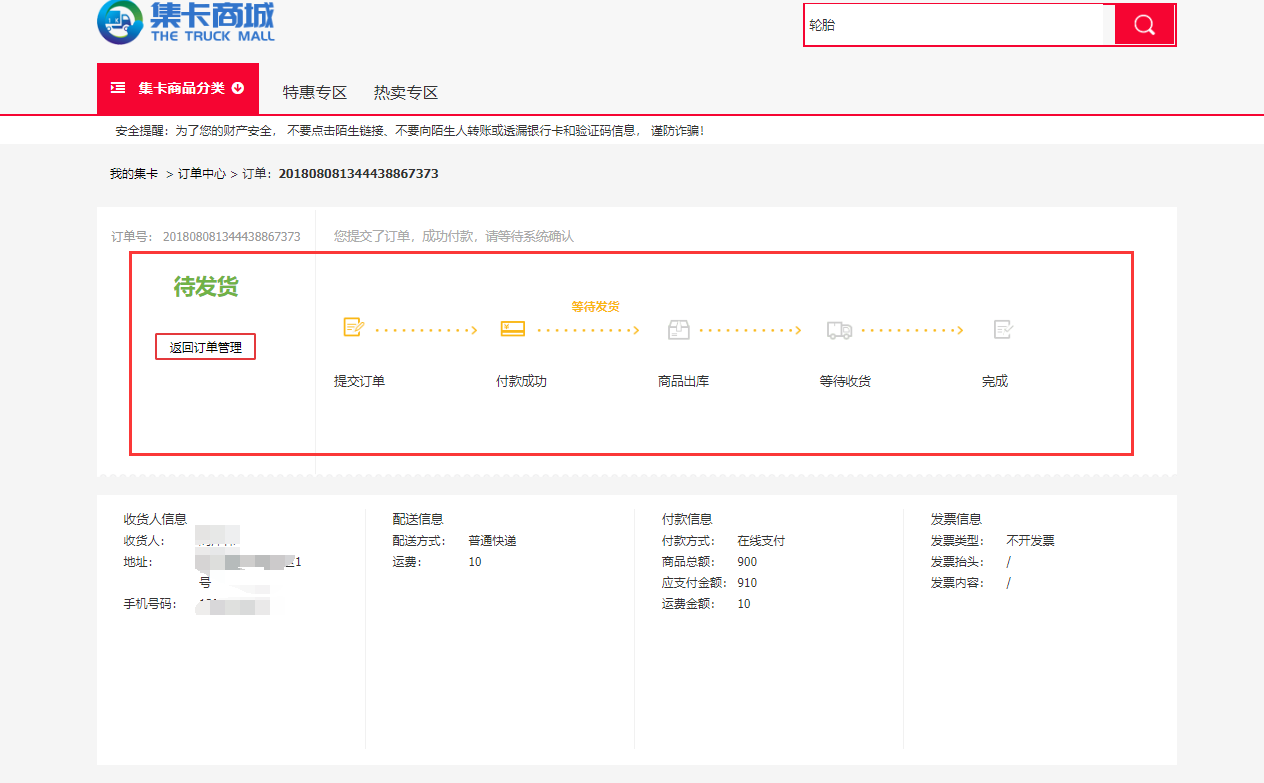 1、点击个人中心,点击左侧的订单管理,之后点击订单详情。(如下图)