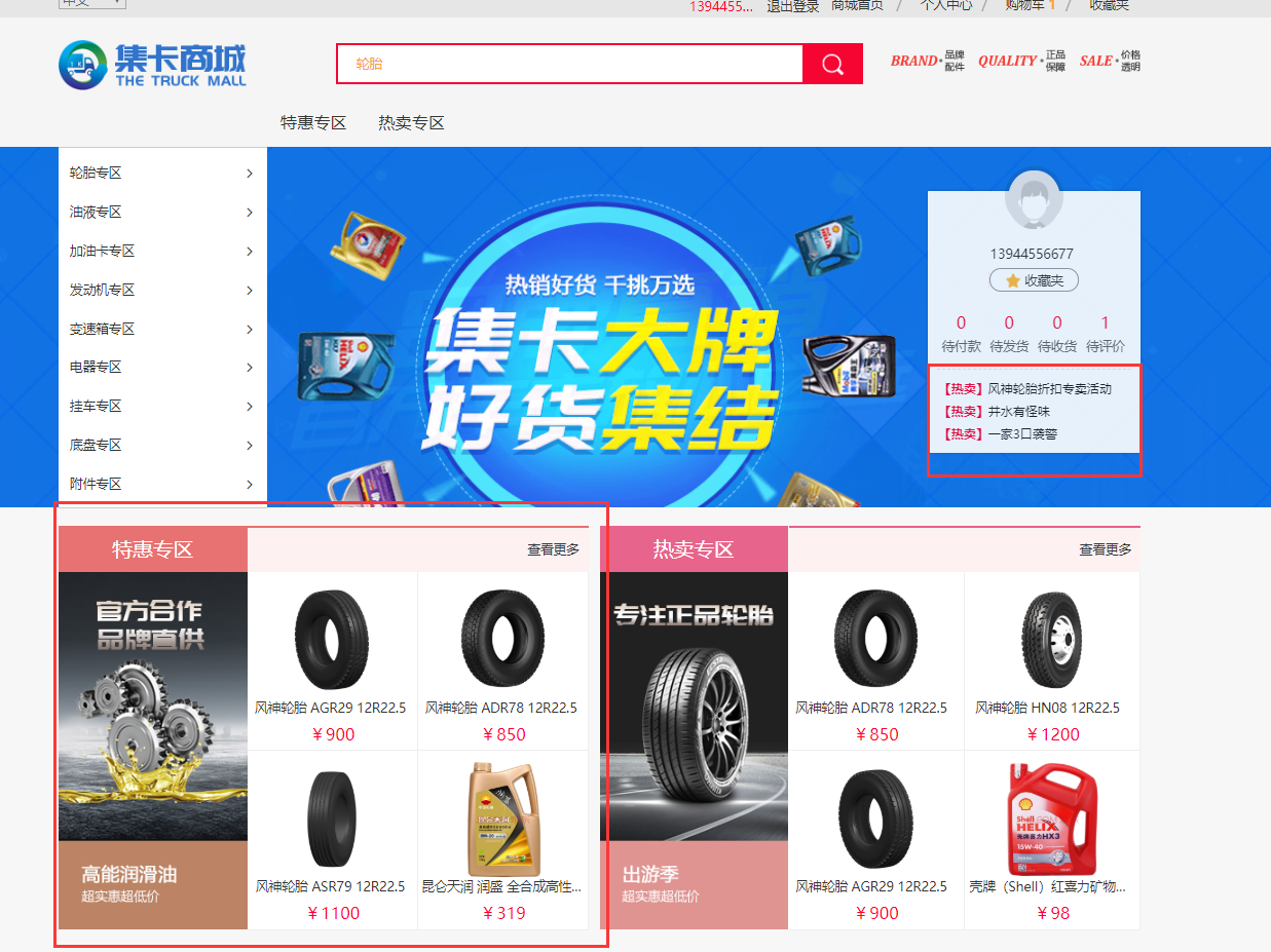 用户可在个人信息页面查看到最新的活动。并且可在特惠专区查看参与活动的商品。(如下图)